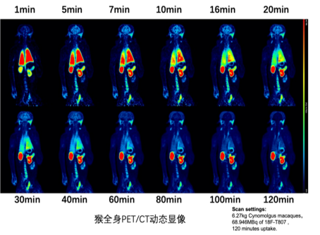 利用分子影像技術(shù)(PET-CT、MRI等)對大動物進行掃描,精準獲取動物體內(nèi)藥代動力學參數(shù);對疾病動物模型的診斷、病程監(jiān)測和治療效果做出實時和連續(xù)的評估,獲取藥效學數(shù)據(jù)。為新藥研發(fā)提供分子放射標記合成,經(jīng)動物成像分析,評價藥物靶向性及腫瘤靶向治療效果等技術(shù)服務。