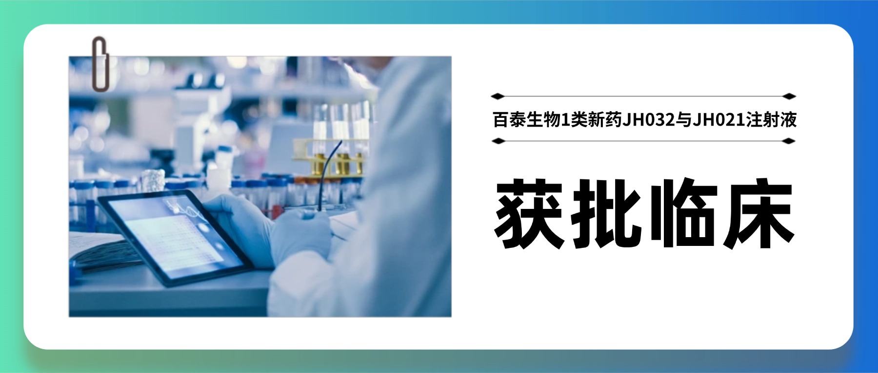 天勤生物助力百泰生物兩款1類新藥JH032與JH021注射液相繼獲批臨床