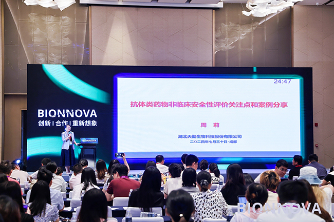 天勤生物執(zhí)行副總裁周莉博士在【抗體藥物開發(fā)前沿】分論壇上也帶來了主題為“抗體藥物非臨床安全性評價(jià)關(guān)注點(diǎn)和案例分享”的精彩演講。周莉博士著重介紹了抗體藥物非臨床安全性評價(jià)的關(guān)注點(diǎn),從種屬選擇、組織交叉反應(yīng)、免疫原性、免疫毒性、生殖毒性、PK/PD六個(gè)方面進(jìn)行了解讀,并通過實(shí)際案例展示了天勤生物在抗體藥物非臨床安全研究中的經(jīng)驗(yàn)。周莉博士的報(bào)告內(nèi)容翔實(shí)、分析透徹,彰顯了天勤生物在非臨床安全研究領(lǐng)域的深厚底蘊(yùn)與創(chuàng)新能力。