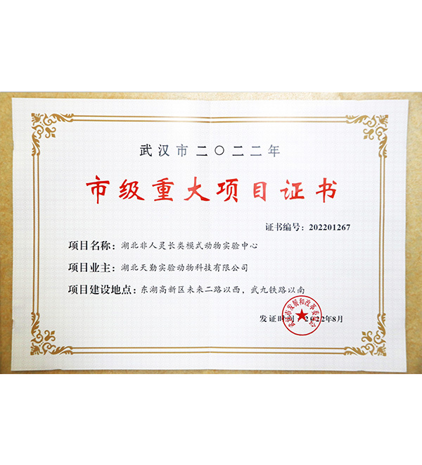 市級(jí)重大項(xiàng)目證書(shū)